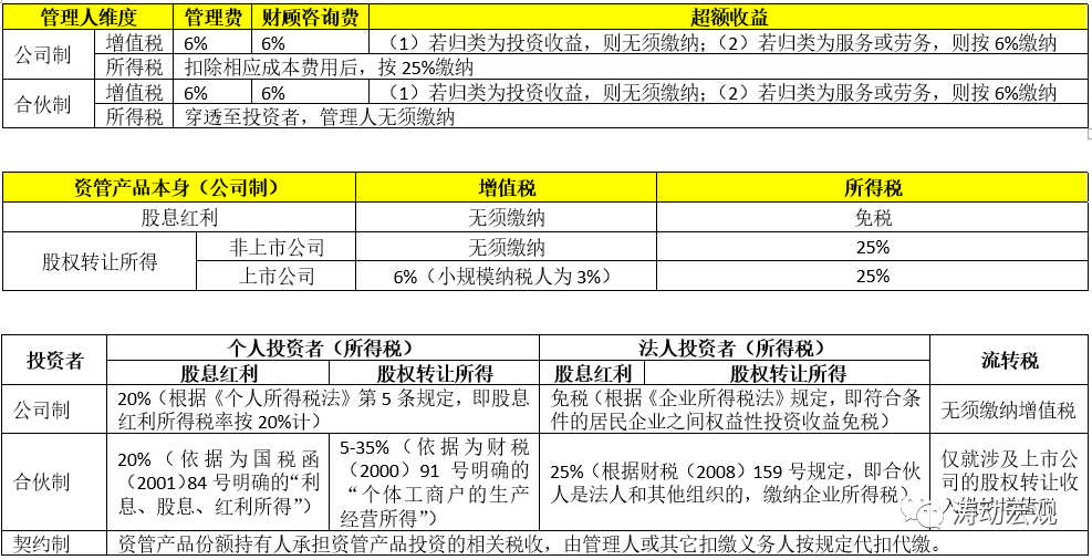 4、資管產(chǎn)品本身來(lái)看,考慮到合伙制企業(yè)層面不繳納所得稅、增值稅則與公司制企業(yè)相同,契約制合伙人層面不涉及稅收,因此這里僅以公司制企業(yè)為主。