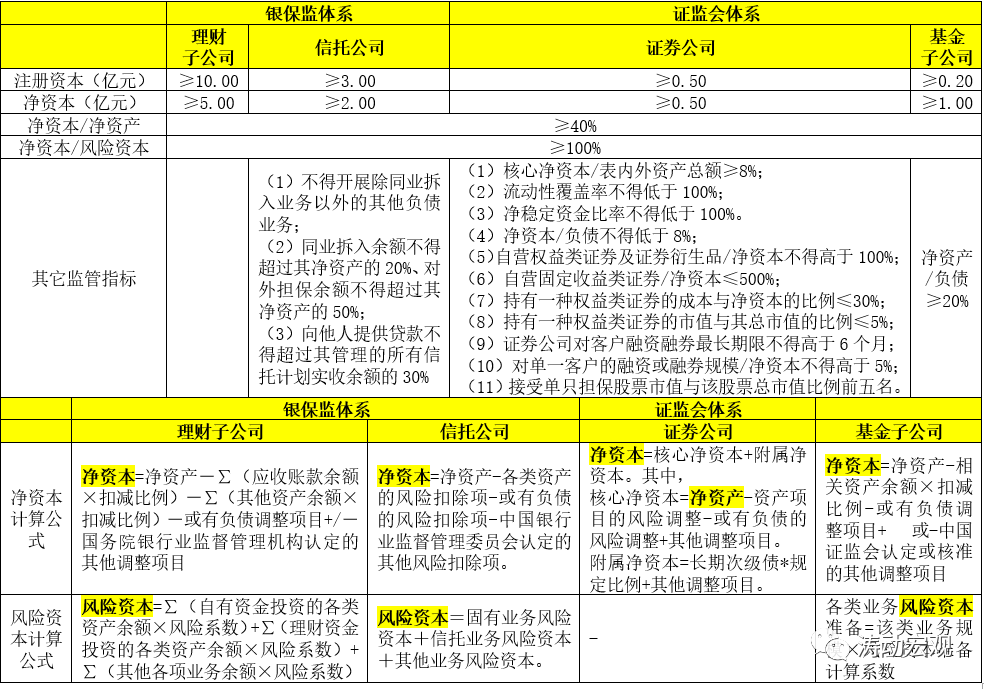 (二)關(guān)于凈資本(理財(cái)子公司與基金子公司類似、相對(duì)較寬松)