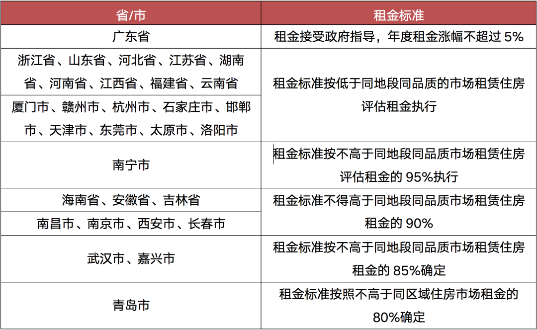 比如上海,對面向社會供應(yīng)的保障性租賃住房,明確租賃價格應(yīng)當(dāng)在同地段同品質(zhì)市場租賃住房租金的九折以下;面向本園區(qū)、本單位、本系統(tǒng)職工定向供應(yīng)的保障性租賃住房,租賃價格可進一步降低