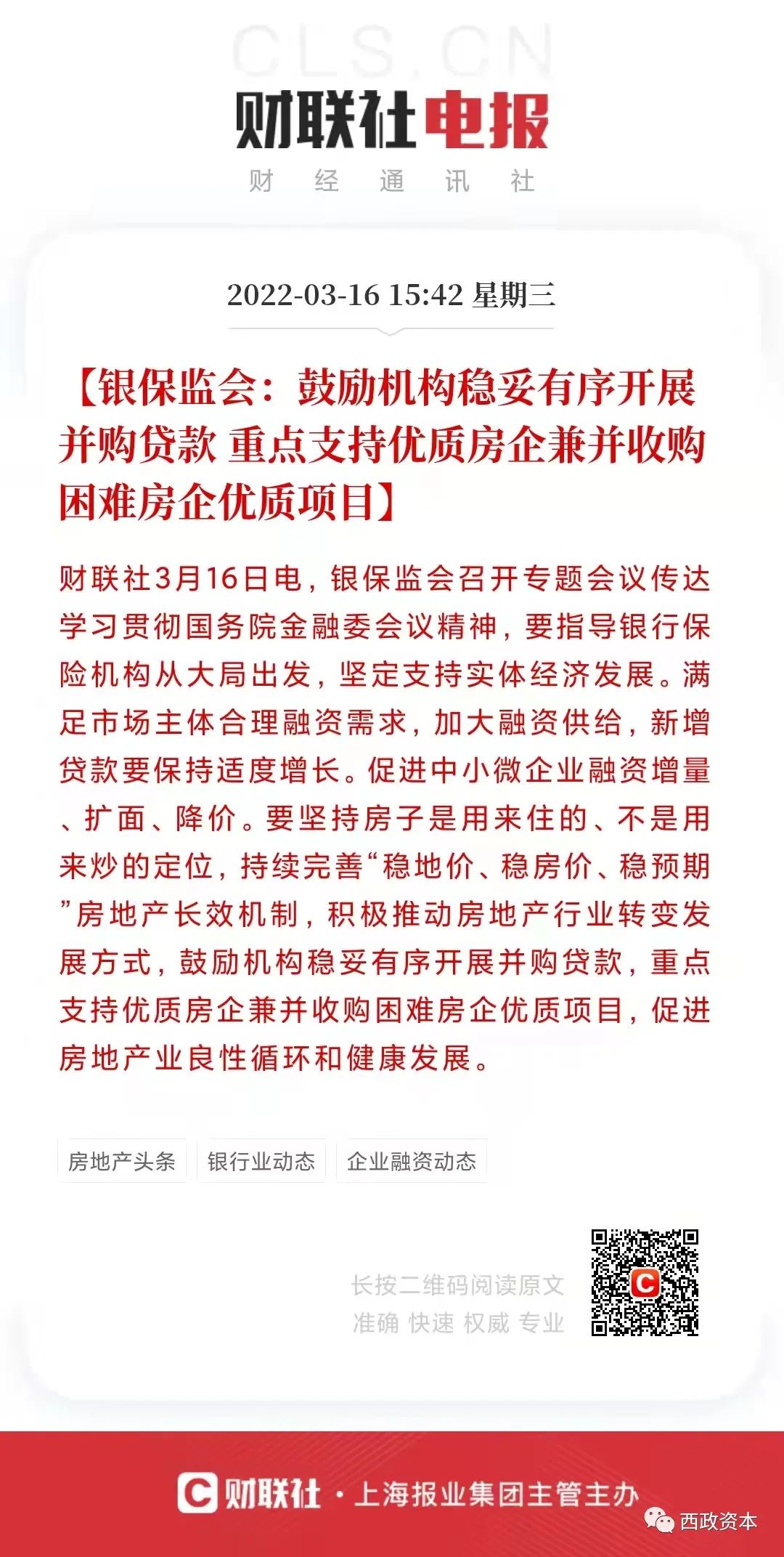 三、銀保監會:鼓勵機構穩妥有序開展并購貸款,重點支持優質房企兼并收購困難房企優質項目