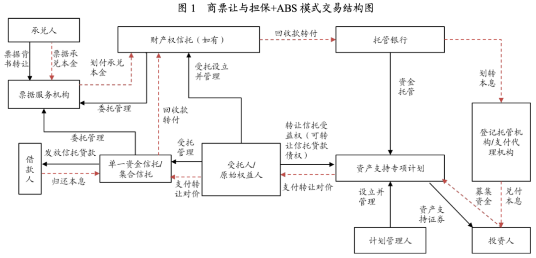 附有商票讓與擔(dān)保的債權(quán)類ABS一般是以底層資產(chǎn)涉及的商票承兌人付款為最終還款來源,基礎(chǔ)資產(chǎn)為單一資金信托/集合資金信托的信托貸款債權(quán)或形成財(cái)產(chǎn)權(quán)信托的信托受益權(quán)。