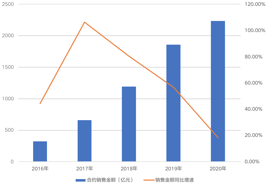 圖:金科2016年-2020年銷(xiāo)售金額及增速