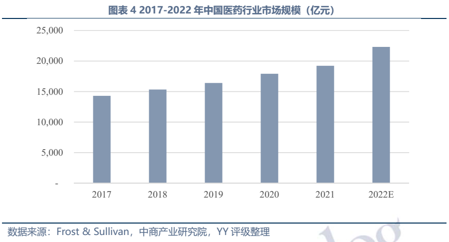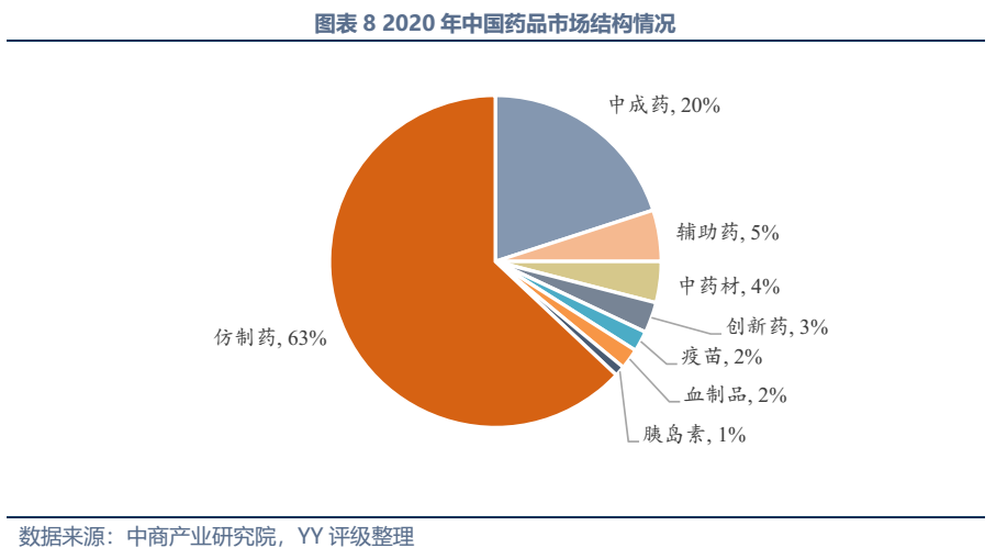 近年來,我國醫(yī)藥市場規(guī)模保持較快速度增長, 2021年達(dá)19,220億元。不過我國醫(yī)藥行業(yè)長期處在相對粗放發(fā)展的階段,表現(xiàn)為行業(yè)集中度較低,低端、劣質(zhì)仿制藥較多且臨床需求高的藥品在專利過期后仍無仿制的現(xiàn)象屢有發(fā)生,在此背景下集中采購、醫(yī)保控費、一致性檢驗等政策出臺推進(jìn)制藥行業(yè)逐步規(guī)范化,政策引導(dǎo)下資金實力和研發(fā)實力強(qiáng)的企業(yè)更具發(fā)展前景。