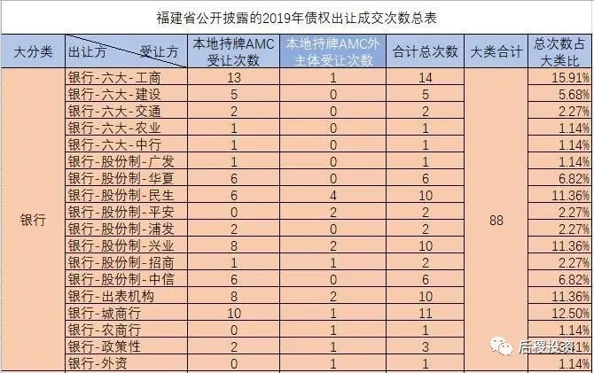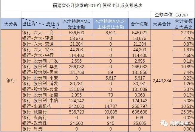 a、單從金額上看,2019年福建省一級(jí)市場(chǎng)銀行出讓債權(quán)總金額約244億元左右,其他機(jī)構(gòu)約25億元左右,合計(jì)269億元左右,由于有關(guān)信達(dá)的金額數(shù)據(jù)缺失,故此金額應(yīng)當(dāng)更高(信達(dá)的實(shí)際受讓金額按與其他AMC的戶(hù)數(shù)比例推算,應(yīng)當(dāng)在25-30億之間)。對(duì)比2018年的380億元左右,規(guī)模大幅下降。