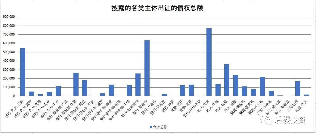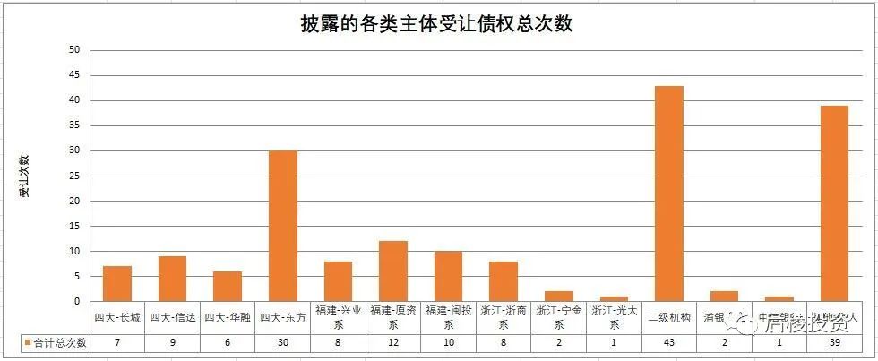 在我們搜集到的公開(kāi)轉(zhuǎn)讓記錄中,未透露債權(quán)金額的共有36筆。其中大部分對(duì)成交情況判斷影響不大,但有關(guān)信達(dá)的成交記錄絕大部分均未透露債權(quán)金額,信達(dá)出讓的10次記錄全部未透露金額,而受讓的9次記錄也未透露,這造成了本文中信達(dá)債權(quán)成交額信息缺失,對(duì)總量和信達(dá)本身的情況判斷變得困難,在此提醒讀者注意。