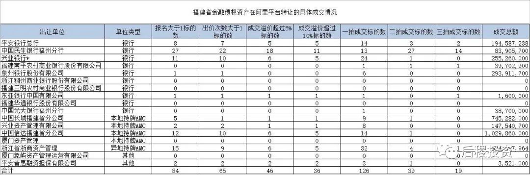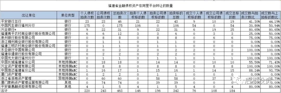 福建省金融債權(quán)資產(chǎn)在阿里平臺(tái)轉(zhuǎn)讓成交情況