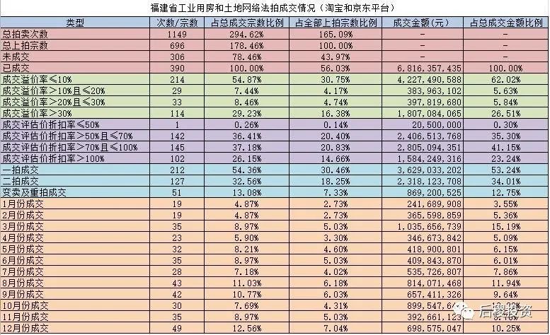 福建省工業(yè)房產(chǎn)和土地司法拍賣(mài)成交情況