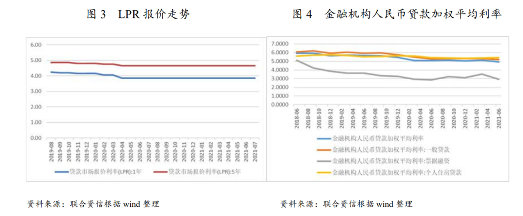 社會(huì)融資成本方面,2021年,央行貨幣政策堅(jiān)持“穩(wěn)字當(dāng)頭,不急轉(zhuǎn)彎”的政策思路,年內(nèi)LPR報(bào)價(jià)保持穩(wěn)定;截至2021年6月,金融機(jī)構(gòu)人民幣加權(quán)平均利率為4.93%,創(chuàng)2018年6月以來(lái)新低,實(shí)體經(jīng)濟(jì)貸款利率下行,而個(gè)人住房貸款利率受房地產(chǎn)嚴(yán)監(jiān)管影響有所上升。