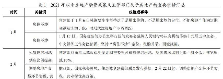 2021年作為“十四五”規(guī)劃的開(kāi)局之年,房地產(chǎn)行業(yè)依舊延續(xù)“房住不炒、因城施策”的政策主基調(diào),政策持續(xù)高壓,針對(duì)個(gè)別前期市場(chǎng)熱度較高的城市,上半年調(diào)控持續(xù)加碼;同時(shí),新型城鎮(zhèn)化、住房保障體系建設(shè)作為重點(diǎn)持續(xù)被強(qiáng)調(diào)。