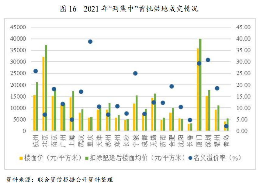 從首批土地集中供應(yīng)政策的實(shí)施結(jié)果來(lái)看,部分城市土地競(jìng)拍規(guī)則的引入加大了競(jìng)拍的隨機(jī)性和拿地成本,但核心城市、核心區(qū)域土地?zé)岫热跃S持高位,市場(chǎng)競(jìng)爭(zhēng)激烈,不同城市或同一城市不同地塊的土地溢價(jià)率呈現(xiàn)分化。