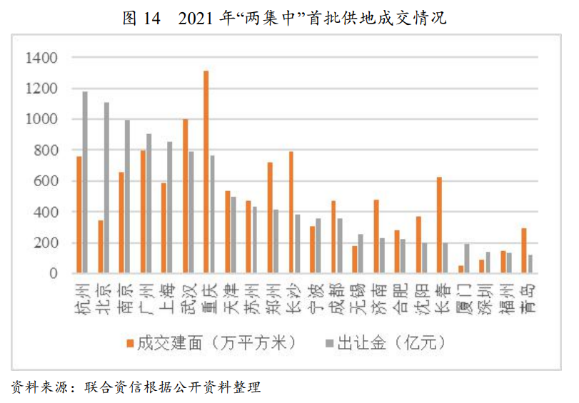 截至2021年6月底,22個(gè)城均已采用“兩集中”模式完成首批宅地供應(yīng),首批供地942宗(含14宗打包出讓的非宅用地),成交889宗,出讓金合計(jì)1.07萬(wàn)億元,出讓金前五名城市包括杭州、北京、南京、廣州以及上海,金額均超800億元;蘇州、北京、天津等城市推地面積規(guī)模較大,均超過(guò)2020年的50%;10城實(shí)現(xiàn)零流拍成交,整體流拍率低于6%,同比下降明顯,主要源自長(zhǎng)春、沈陽(yáng)、天津等非熱點(diǎn)城市以及城市非核心地塊。