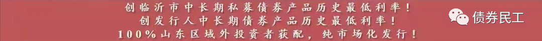 2、強(qiáng)調(diào)區(qū)域最低利率+純市場化發(fā)行的海報(bào),比如發(fā)行利率創(chuàng)臨沂市中長期私募債利率最低、發(fā)行人歷史最低利率、100%純市場化發(fā)行。