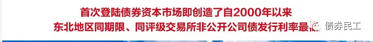 5、強(qiáng)調(diào)特定時(shí)間+特定區(qū)域+特定期限+特定評級+特定產(chǎn)品利率最低的海報(bào),比如發(fā)行利率創(chuàng)2000年以來、東北地區(qū)、同期限、同評級、非公開發(fā)行公司債券最低票面利率。