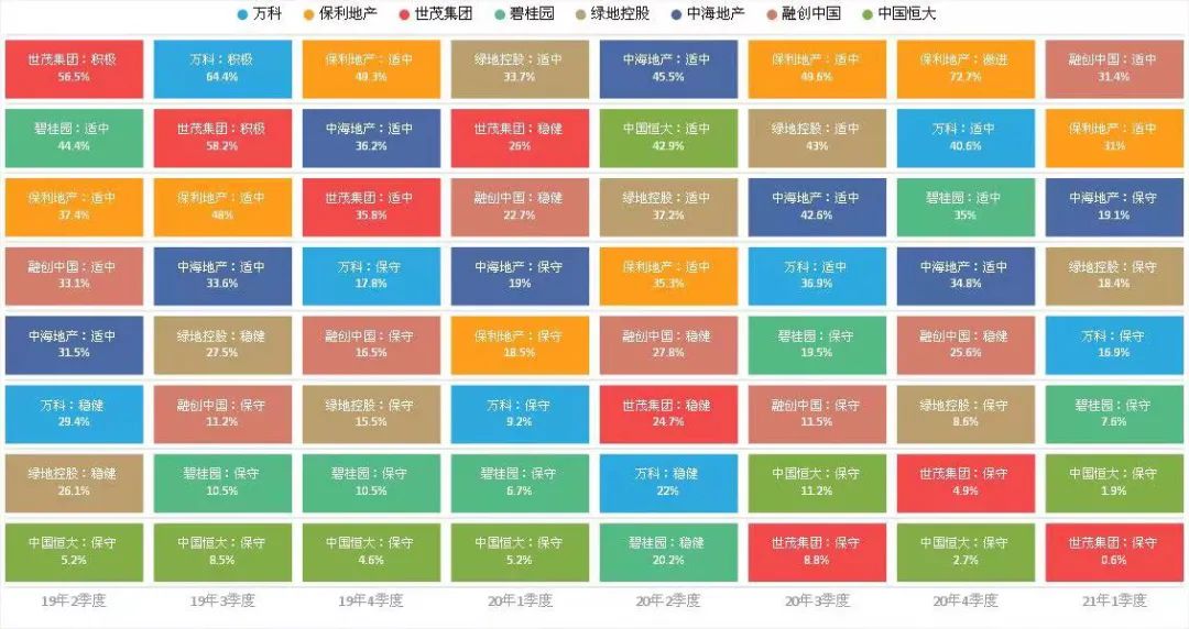以最近被質(zhì)疑保守的中海來講其拿地曲線也是波動的過去兩年時間里基本保持在適中狀態(tài)部分季度保持在保守狀態(tài)