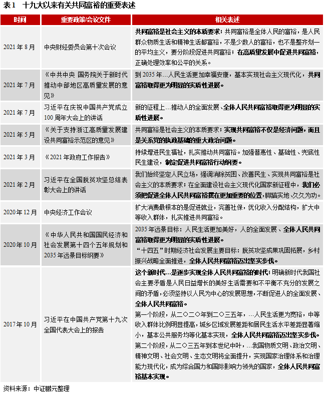 核心觀點(diǎn):共同富裕目標(biāo)將成為今后我國(guó)深化改革的重要方向,可重點(diǎn)關(guān)注后續(xù)在收入分配,特別是再分配和三次分配上的配套措施。