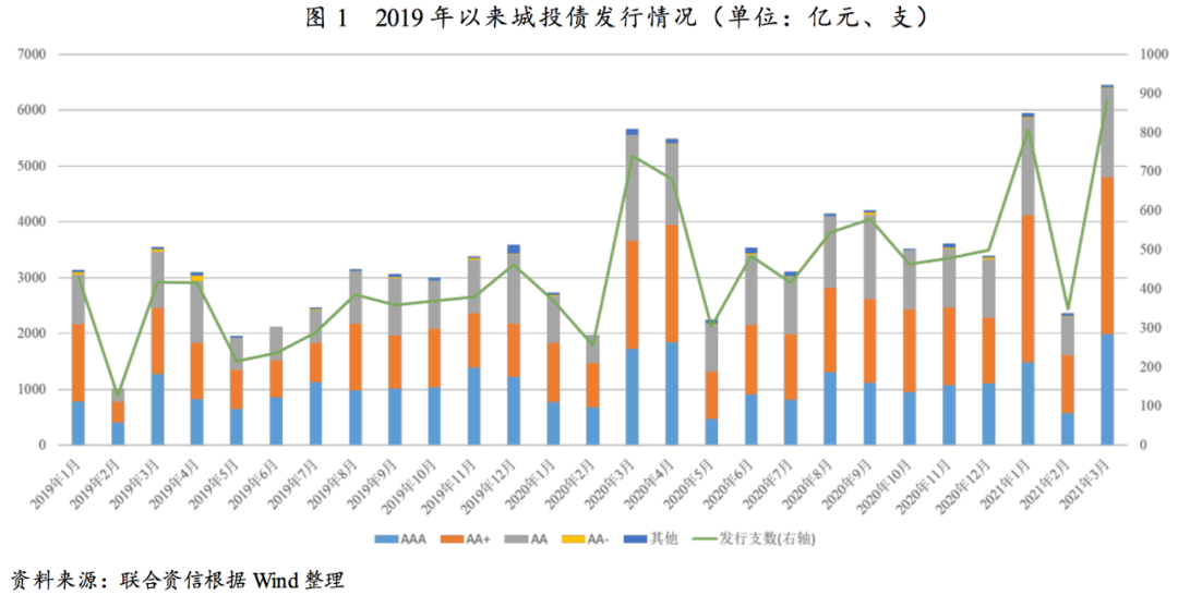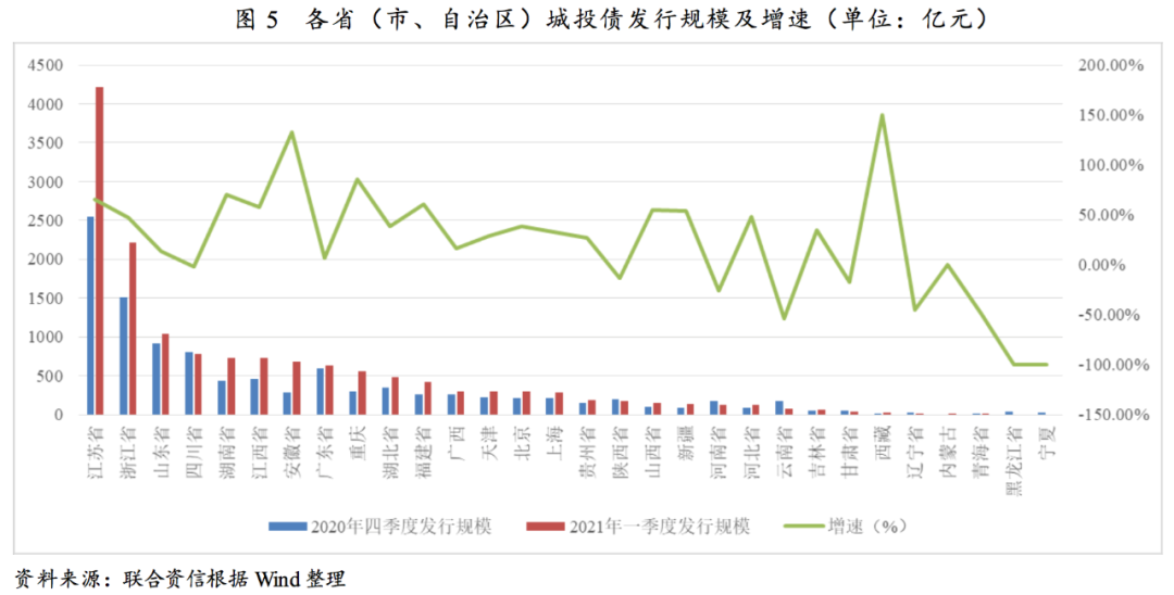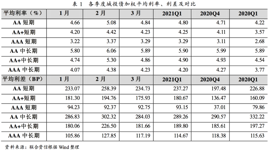受2021年再融資需求擴大及市場情緒修復的影響,一季度城投債發(fā)行數(shù)量及規(guī)模大幅增長。