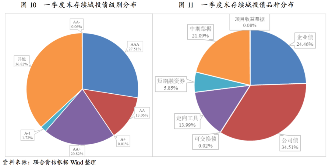 從區(qū)域分布看,江蘇省城投債余額仍居首位;從信用級別看,存續(xù)城投債以高級別為主;從債券品種看,存續(xù)城投債以公司債和企業(yè)債為主。