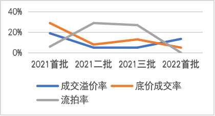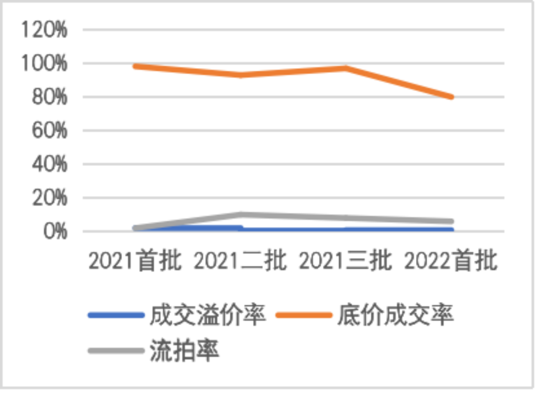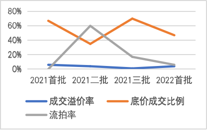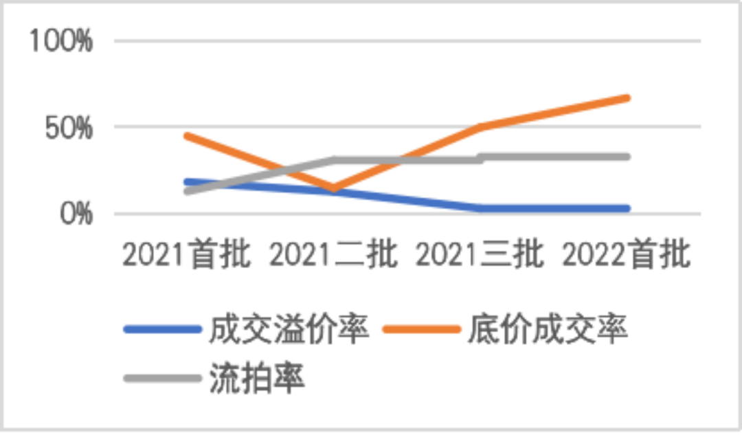圖2-3:2021-2022合各輪供地成交面積、成交率、底價(jià)成交率、流拍率等