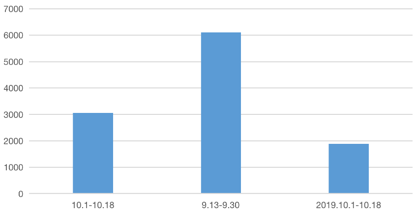 經(jīng)歷短暫降溫之后,10月5日,二手房成交套數(shù)迅速反彈至111套,至10月9日,成交套數(shù)已恢復(fù)282套相對(duì)高位。從10月1日至10月18日數(shù)據(jù)來(lái)看,二手住宅總成交套數(shù)達(dá)到3059套,環(huán)比(9月13-30日)減少99%,成交明顯縮量,但相較于2019年同期仍增長(zhǎng)62%。