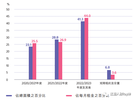 確切地說,租約到期分布其實不能算是一項指標(biāo),而是一組統(tǒng)計數(shù)據(jù)。它用于分析在未來不同時間區(qū)間到期的合約對整體項目造成的影響程度,以評價項目經(jīng)營持續(xù)性的風(fēng)險。
