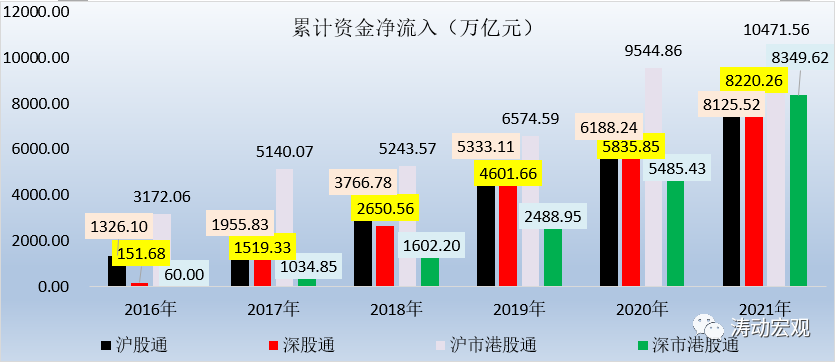 3、北向通累計(jì)資金凈流入分別達(dá)到1.63萬億,全年流入首次超過南向通