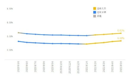 很清楚地看到,在今年1月份之前,一二套房房貸利率連續(xù)下降;在今年1月份之后,一二套房房貸利率連續(xù)上行。