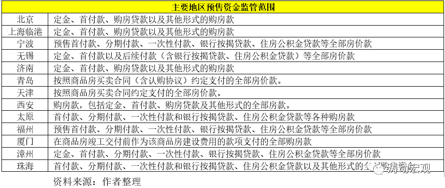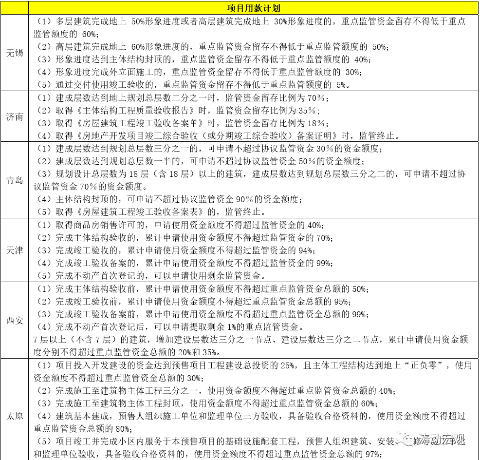 西安地區(qū)亦明確預(yù)售資金監(jiān)管是對(duì)用于本預(yù)售項(xiàng)目的建筑安裝費(fèi)用、小區(qū)內(nèi)配套設(shè)施建設(shè)費(fèi)用、全裝修商品住房項(xiàng)目裝修費(fèi)用、開發(fā)建設(shè)費(fèi)用和償還項(xiàng)目開發(fā)貸款等預(yù)售資金的監(jiān)督管理。