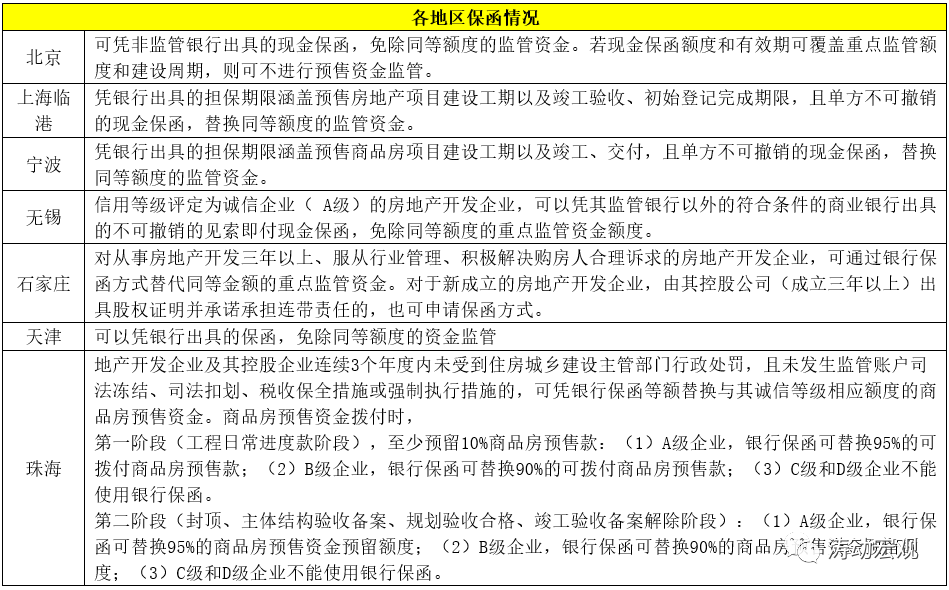 (七)部分地區(qū)明確可以通過保函來替換對(duì)應(yīng)監(jiān)管額度