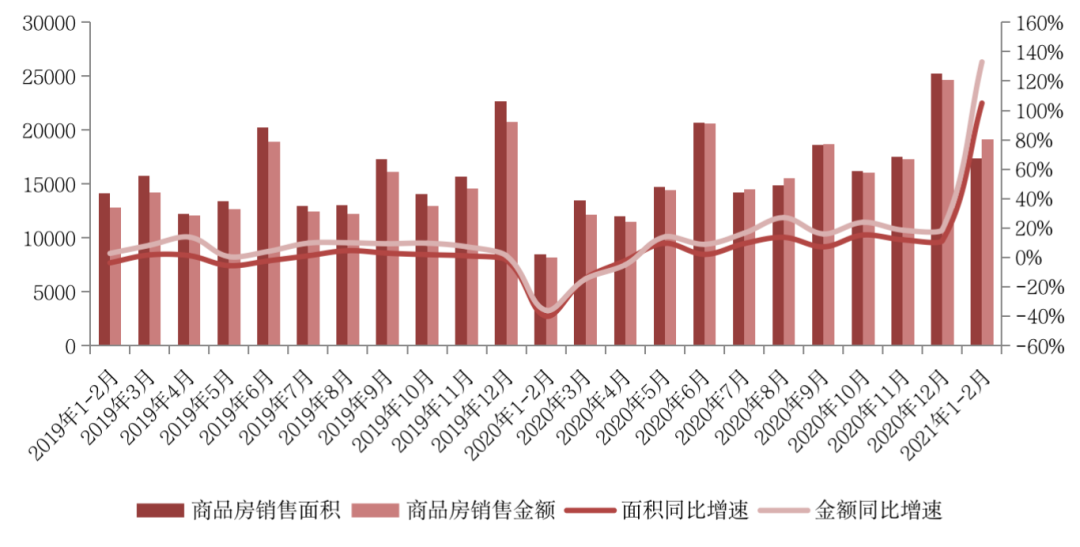 2021年前2月,房地產(chǎn)市場逐漸走出疫情影響,并呈現(xiàn)出“淡季不淡”的特點(diǎn)。