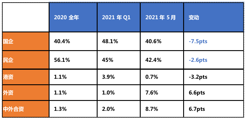 表:2021年Q1及5月各類房企平均融資利率(按票面利率)