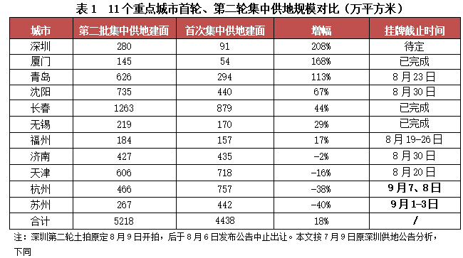 自6月末首批集中拍地收官后,7月整月22城集中土拍集體缺席,土地市場被動“降溫”。供應方面,7月中上旬僅有無錫、深圳兩城發布第二批集中供地,直至7月末,天津、福州、杭州、濟南、青島、沈陽、蘇州等7個城市扎堆供地,上海也發布了預公告,第二批集中供地方才迎來“井噴期”。為了幫助預判接下來土地市場的走勢,本文將結合近期重點城市供地規模、供地質量和政策導向等指標進行綜合分析,為企業決策提供參考。