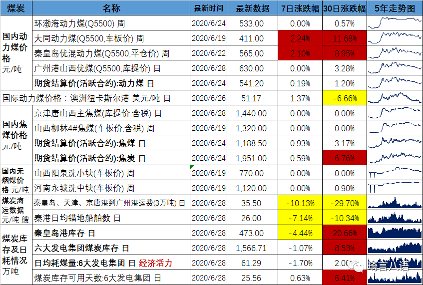 煤炭行業(yè)數(shù)據(jù)表
