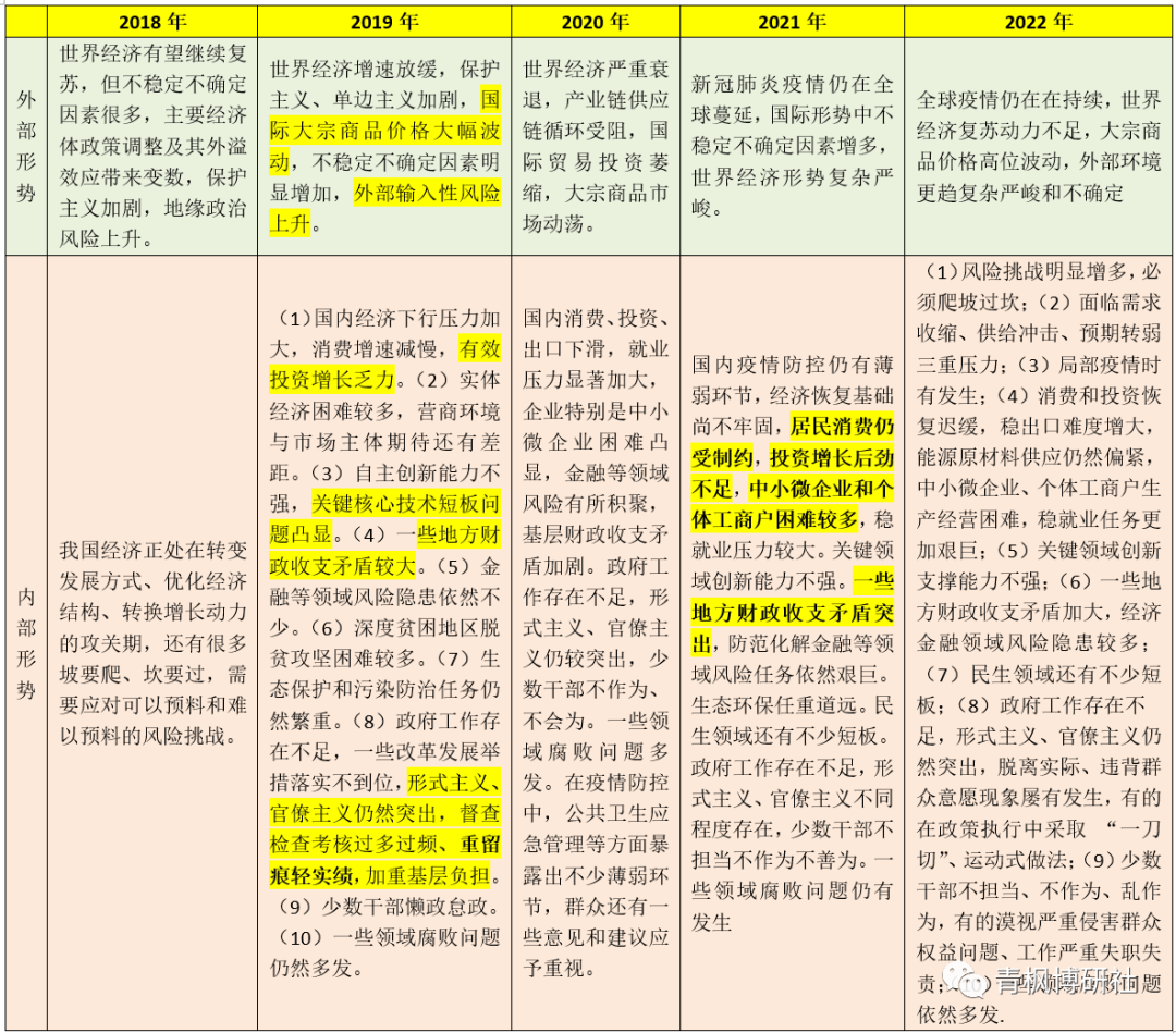 一、要點(diǎn)1:外部形勢看更趨復(fù)雜嚴(yán)峻和不確定,內(nèi)部形勢看風(fēng)險(xiǎn)挑戰(zhàn)明顯增多