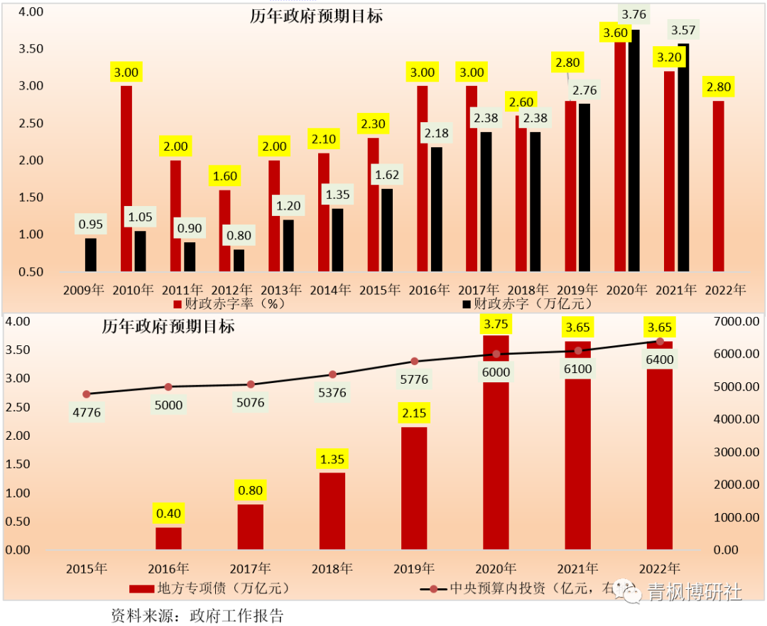 (一)雖然專項(xiàng)債規(guī)模沒發(fā)生變化,但中央預(yù)算內(nèi)投資規(guī)模較2021年大幅增長300億元至6400億元,相對來說比較積極,此舉我們理解意在穩(wěn)投資以及引導(dǎo)投資,通過中央預(yù)算內(nèi)資金的引導(dǎo),來推動更多資金加入。