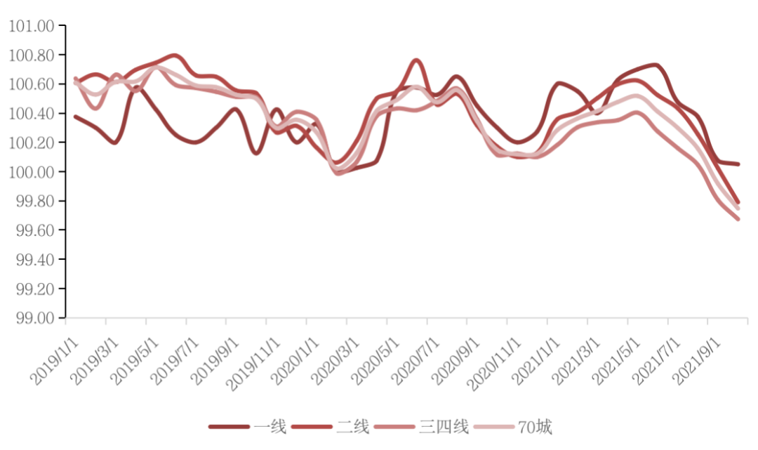 國家統(tǒng)計局數(shù)據(jù)顯示,2021年10月,70個大中城市商品住宅銷售價格環(huán)比總體延續(xù)略降態(tài)勢,同比漲幅繼續(xù)回落。