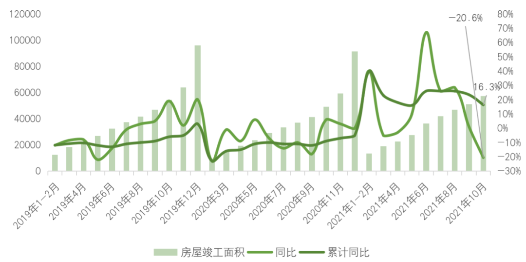10月全國房屋竣工面積6277萬平方米,同比下降20.6%,由正轉負降幅擴大21.6pct。1-10月全國房企本年到位資金同比增速降至8.8%,受房企資金流動性緊張影響,全社會以建筑業(yè)為代表對房地產業(yè)后市預期悲觀,擔心后續(xù)工程款項兌付問題下部分工期收尾項目已出現(xiàn)停工現(xiàn)象,受此影響下全國整體竣工強度與規(guī)模均由三季度高點快速下降。