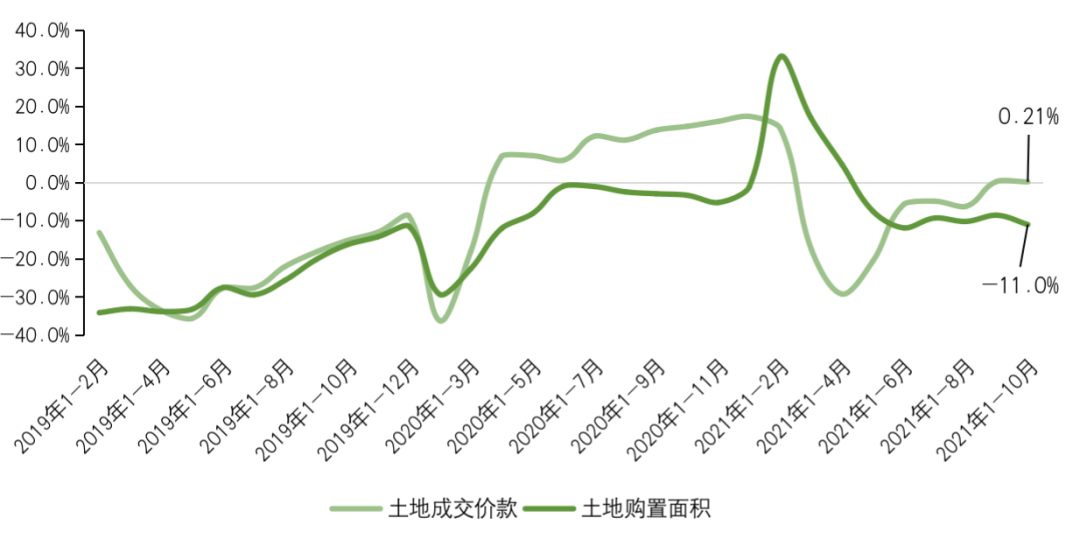 國家統(tǒng)計局數(shù)據(jù)顯示,前10月房地產開發(fā)企業(yè)土地購置面積15824萬平方米,同比下降11.0%,降幅較1-9月擴大2.4pct;土地成交價款11410億元,增長0.2%,增幅較1-9月微收0.1pct。