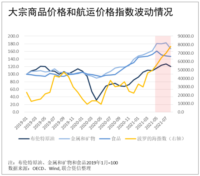 1.2021年以來,隨著全球主要經(jīng)濟(jì)體的經(jīng)濟(jì)復(fù)蘇以及需求的強(qiáng)勢反彈,大宗商品和海運(yùn)價(jià)格均呈現(xiàn)大幅上揚(yáng)的趨勢,反映航運(yùn)價(jià)格變動(dòng)的波羅的海指數(shù)較年初漲幅超過130%;在高運(yùn)價(jià)、交付壓力增大和集裝箱前景不明朗的情況下,航運(yùn)公司主動(dòng)削減運(yùn)力,進(jìn)一步助推貨物運(yùn)輸成本上揚(yáng)。