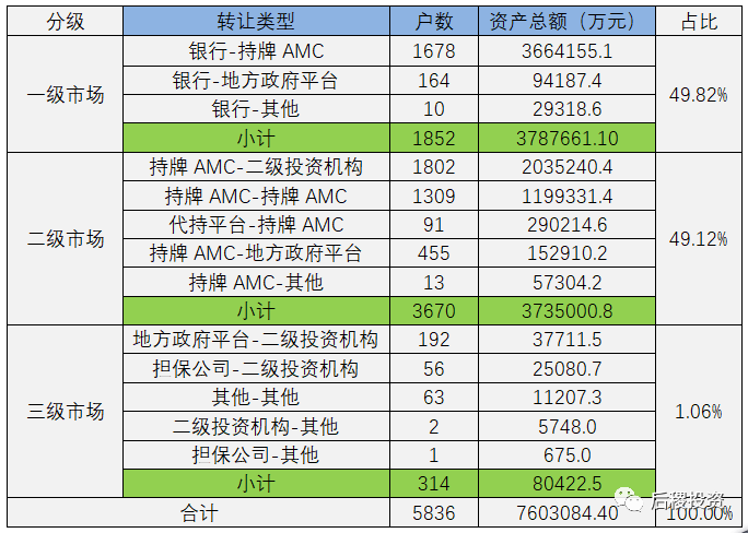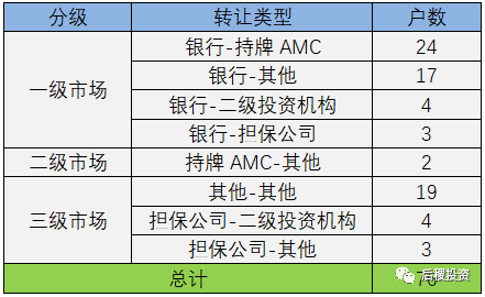 一般的,我們將銀行端出讓債權(quán)為一級市場,本地持牌AMC或代持機(jī)構(gòu)出讓債權(quán)為二級市場,除此其他債權(quán)轉(zhuǎn)讓為三級市場。