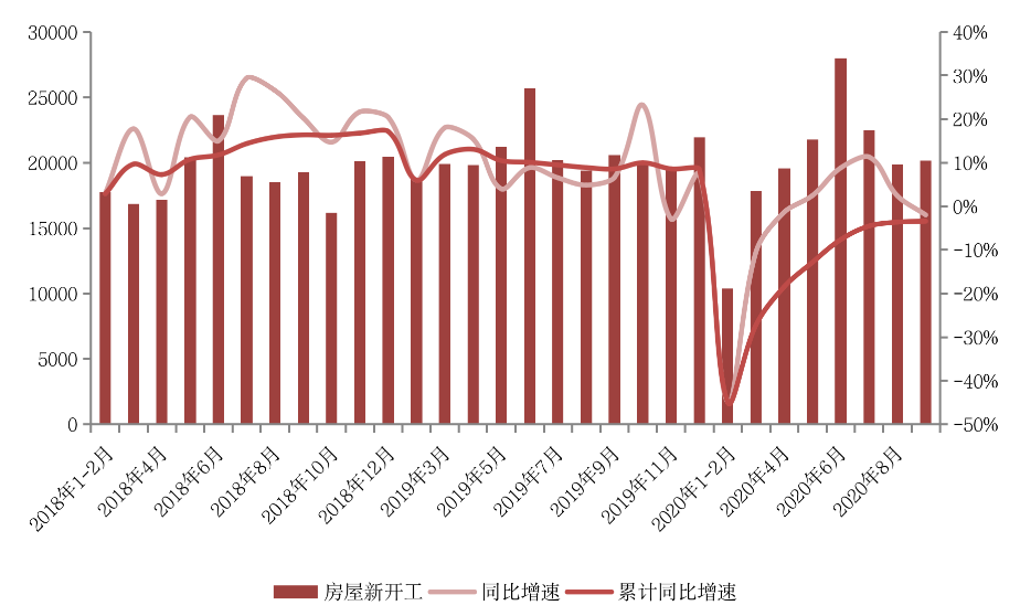 一方面是房企當(dāng)前迫切需要資金節(jié)流。另一方面由于疫情所致上半年全國土地購置面積較小,因此下半年可供開工項(xiàng)目基數(shù)也少于往年同期。