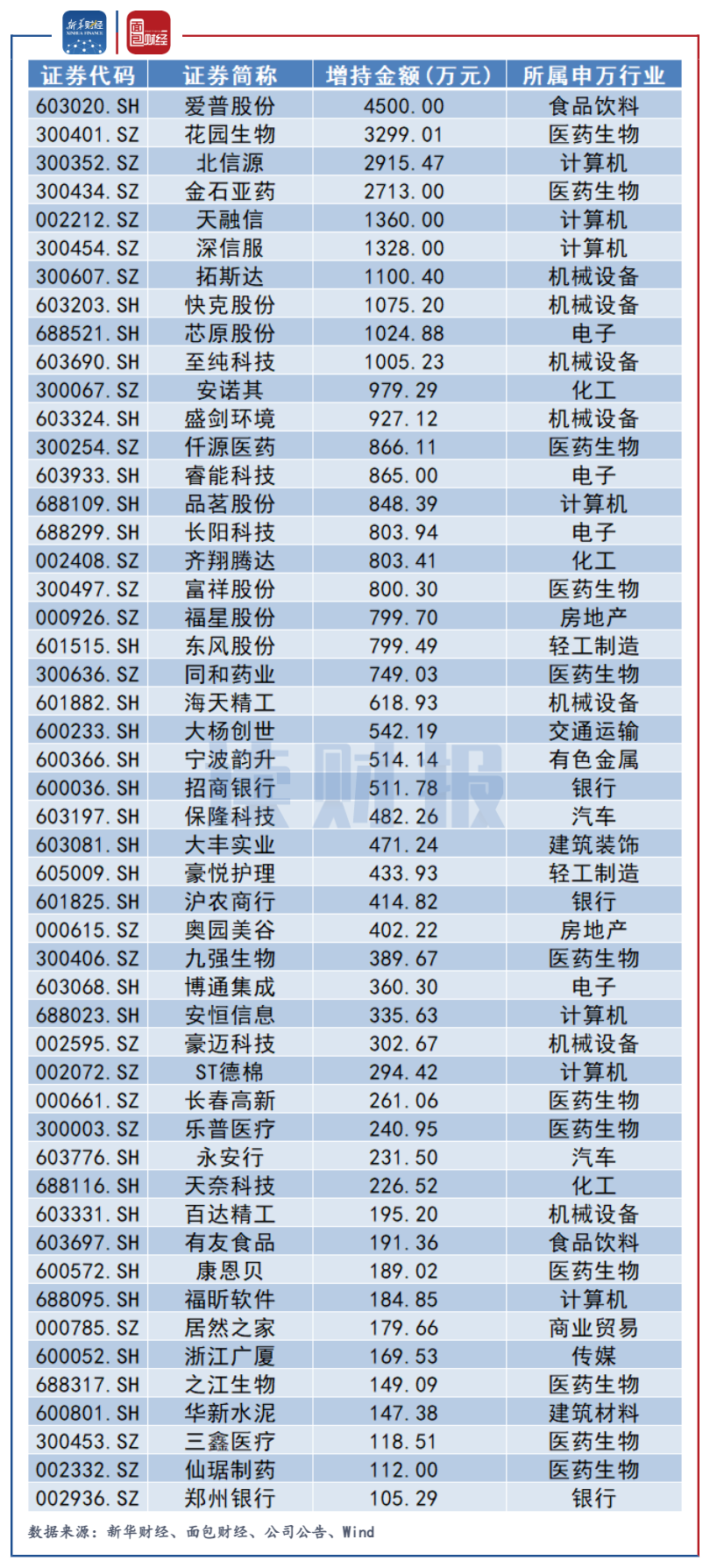 醫(yī)藥生物行業(yè)增持金額居首