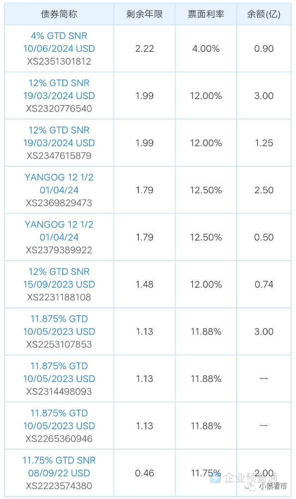 3月11日,陽(yáng)光集團(tuán)存續(xù)1.06億美元境外債券“YANGOG 12.5 02/20/22”發(fā)生本息實(shí)質(zhì)違約,3億美元“YANGOG 12.5 01/04/24”利息實(shí)質(zhì)違約,應(yīng)付利息1875萬(wàn)美元。