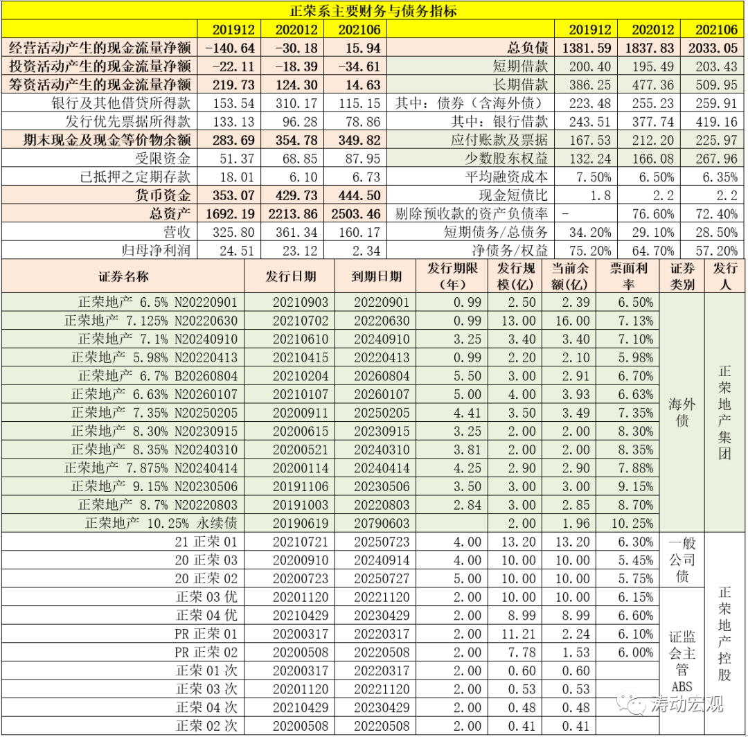 我們關(guān)注到,2022年4月13日正榮地產(chǎn)集團有2.10億美元的海外債到期、6月30日有16億美元的海外債到期、8月3日有2.85億美元的海外債到期以及9月1日有2.39億美元的海外債到期。