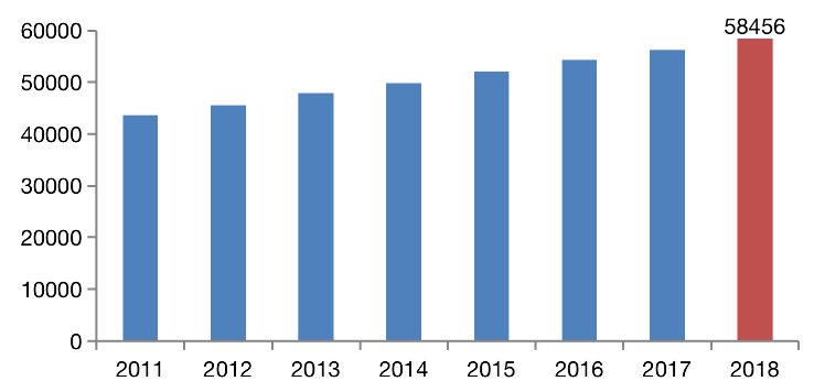 圖:2011-2018年全國城市建成區(qū)面積(平方公里)