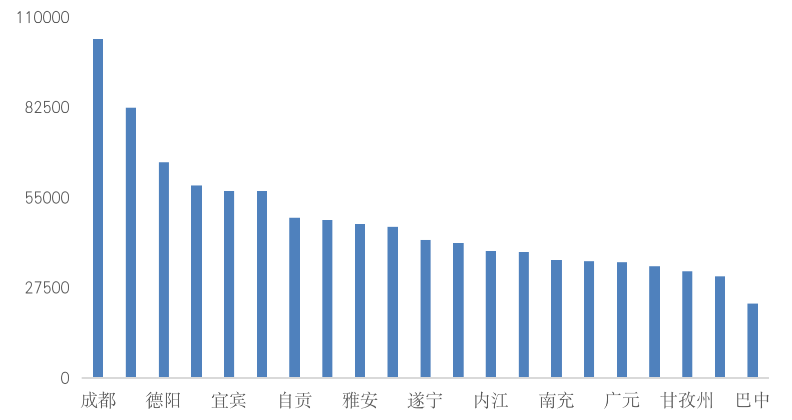 由于四川省內(nèi)多山地、丘陵,交通極為不便,僅有成都所在的東部區(qū)域地勢(shì)平緩,這也造成了四川省內(nèi)經(jīng)濟(jì)發(fā)展的不均衡。從各城市2019年常住人口GDP來看,除成都和攀枝花超出全國均值外,其余城市的人均GDP多在5萬元/人之下,其中如巴中的人均GDP在2019年仍不足3萬元/人,省內(nèi)貧富差異十分顯著。特別是川北及藏區(qū)一帶,多個(gè)縣市曾是全國的深度貧困區(qū),截止2019年底,全省貧困村還有300個(gè),貧困人口還有20萬,脫貧任務(wù)仍比較艱巨。