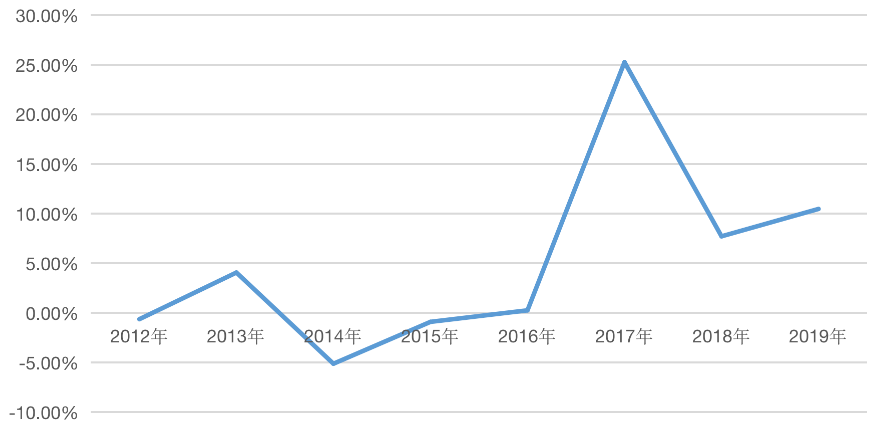 揚(yáng)州歷年商品住宅成交價(jià)格漲幅(%)