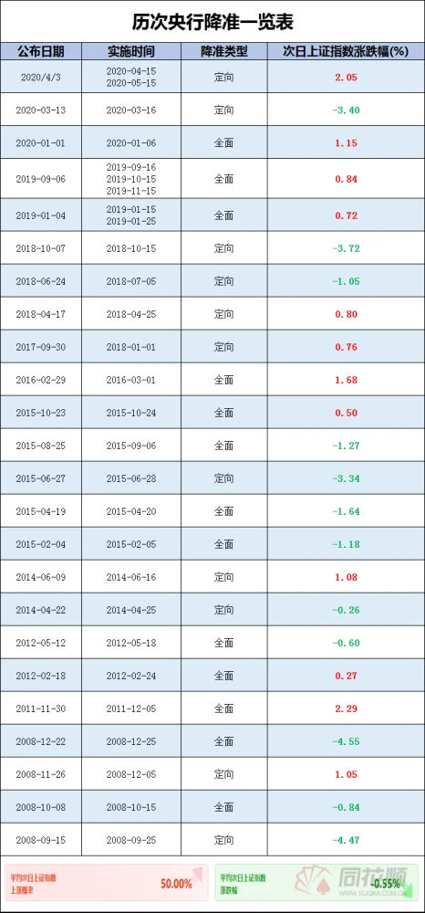 2,今年以來部分大宗商品價格持續(xù)上漲,在此背景下,上游對中下游企業(yè)利潤擠占明顯,中小微企業(yè)壓力較大,成本明顯上升,需要降低融資成本緩解壓力。3,聽機構(gòu)的人說,觀察到疫情后,居民的預(yù)防性儲蓄偏高,消費持續(xù)不及預(yù)期,內(nèi)需指標的恢復(fù)進程可能會因PPI上升而放慢步伐。國內(nèi)經(jīng)濟雖然穩(wěn)了,但消費拉不起來,經(jīng)濟基本面就強不起來。4,降準的另一頭是怕通脹,但這個問題目前來看還好。一方面國內(nèi)通脹水平整體可控,也算是為降準打開空間;另一方面,大家也感覺到目前政策的重心是在經(jīng)濟恢復(fù)、穩(wěn)增長,優(yōu)先級重要于防通脹。備注,通脹水平可控,可參考6月CPI與PPI,漲幅均回落了:其中CPI同比上漲1.1%,前值上漲1.3%,漲幅較上月回落0.2個百分點,為今年以來首次回落;PPI同比上漲8.8%,前值上漲9%,漲幅回落0.2個百分點。5,M2與社融基本上已回歸至2019年的常態(tài)水平,實體經(jīng)濟依然感覺流動性不足,需要政策層面給予呵護。6,再有就是從銀行層面看,通過釋放銀行被凍結(jié)的準備金,也相當(dāng)于降低了銀行們的資金成本,在配合存款報價機制改革的同時,能推動銀行們以更低的資金支持中小微企業(yè)。我們小老百姓關(guān)心得最多的,無非樓市、股市、債市。再者“愉見財經(jīng)”是寫銀行的公眾號,那也看看對銀行業(yè)而言是否利好(這或也關(guān)于銀行股走勢,是吧?)對樓市,“愉見財經(jīng)”覺得與其盯著市場資金面,不如直接看信貸政策,來得更單刀直入。那么遺憾的是,盡管資金面上頭有好消息,但信貸政策沒有啊。準備金率一低,是可以釋放出資金,但我不認為最懂政治的銀行們敢把這錢搞到房地產(chǎn)類貸款里,“兩道紅線”還是矗在那里巋然不動的好伐。不信你們看,很多地區(qū)的二手房還是停貸中啊。再者,就是上頭希望的是銀行們對實體經(jīng)濟、小微企業(yè)那么持續(xù)保持低貸款成本,降的是那頭。房地產(chǎn)類貸款,包括按揭在內(nèi),大概率不會有啥明顯受惠,上頭對樓市的高壓口徑可是一點沒有放松的。所以我的感覺是,對樓市而言,降個準,不算什么大利好。對股市,是有提振信心作用的,至少大家不會擔(dān)心貨幣政策收緊了,但究竟有作用多大,其實有限,肯定不如對債市那么立竿見影。畢竟只是個降準而不是降息,更多影響的是銀行體系內(nèi)價格調(diào)整的問題。我每次降準后寫稿,都要擼一遍歷次降準后第一個交易日我大A是漲是跌,你們看完下表就會了然,其實漲跌概率對半。所以真心難預(yù)測啊,我個人也不認為A股的震蕩期就此結(jié)束。