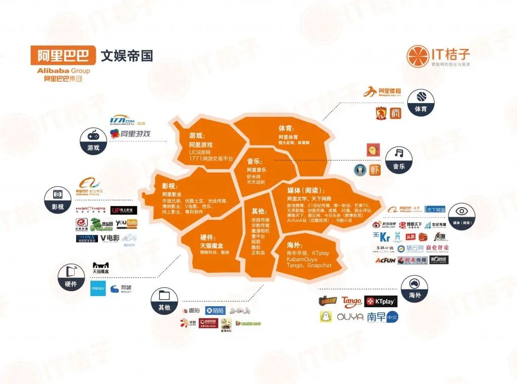 除此之外,阿里還針對(duì)蝦米音樂(lè)、天天動(dòng)聽(tīng)、優(yōu)酷土豆、阿里影業(yè)、華誼兄弟、光線傳媒、芒果超媒等文娛產(chǎn)業(yè)類公司進(jìn)行投資,試圖構(gòu)造大文娛的閉環(huán)。