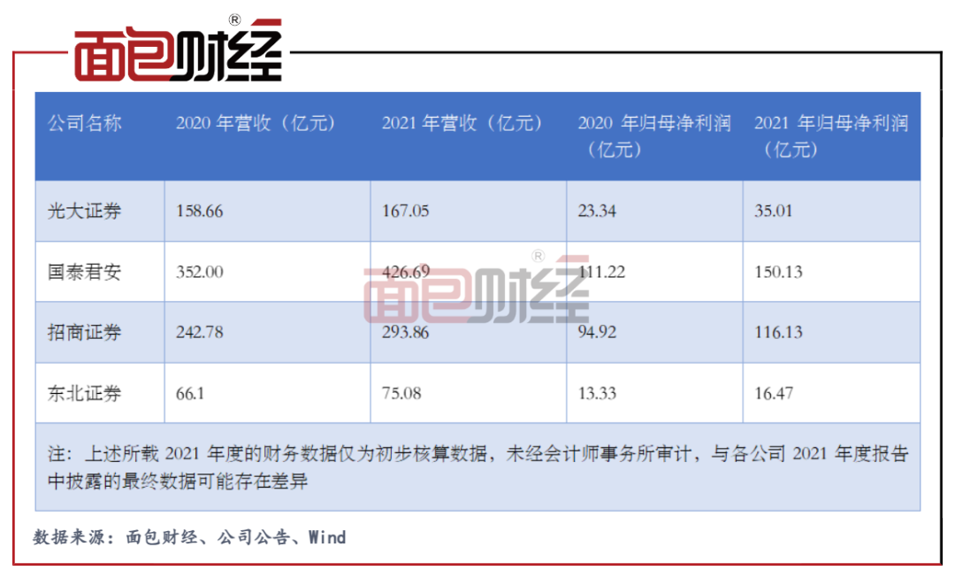 2022年1月21日至24日期間,光大證券、國泰君安、招商證券和東北證券四家券商發(fā)出2021年業(yè)績快報或預(yù)告,上述四家券商的2021年業(yè)績均預(yù)計同比較大幅度增加。(HXY)
