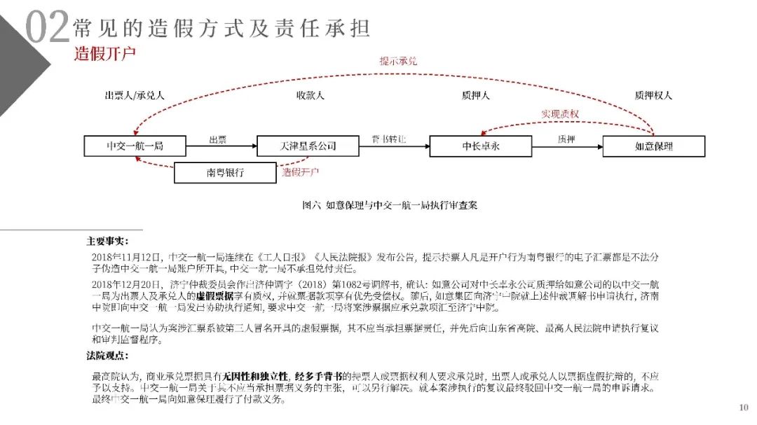 最高院認為, 商業(yè)承兌票據具有無因性和獨立性, 經多手背書的持票人或票據權利人要求承兌時, 出票人或承兌人以票據虛假抗辯的, 不應予以支持。中交一航一局關于其不應當承擔票據義務的主張,可以另行解決。就本案涉執(zhí)行的復議最終駁回中交一航一局的申訴請求。最終中交一航一局向如意保理履行了付款義務。